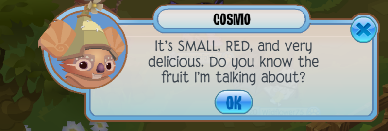 Yeah, that's me. Cosmo remembers the name of chomper seeds, and honey, and nectar, but he doesn't know what a carrot is.