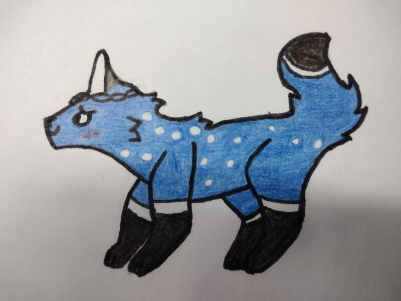 I also challenged myself by using digitigrade legs! For those who don't know, canines, elephants, and other animals like birds walk on their toes, also called "digitigrade locomotion." I only recently started drawing legs like this, so it looks a bit funky.